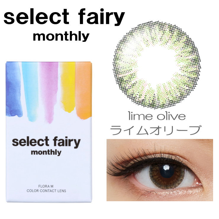 【6/15ポイント14倍 楽天カード決済&エントリー】ライムオリーブ セレクトフェアリーマンスリー DIA:14.2mm 度あり 1ヶ月用 2枚×2(両目分) select fairy monthly 英国風グリーンの瞳 普段使える ハーフカラコン