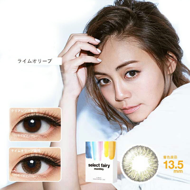 【6/15ポイント14倍 楽天カード決済&エントリー】ライムオリーブ セレクトフェアリーマンスリー DIA:14.2mm 度あり 1ヶ月用 2枚(両目分) select fairy monthly ヌード系グリーンカラコン 普段使える ハーフカラコ