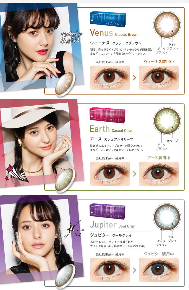 【6/15ポイント5倍 楽天カード決済&エントリー】ボシュロム スターリー カラコン ワンデーカラコン Venus/クラシックブラウン Earth/カジュアルオリーブ Jupiter/クールグレイ ダークブラウン+2色でつくる大人ハーフカラコン 1