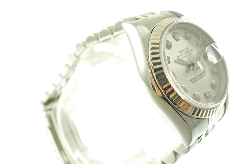 商品情報 管理番号 k3100210928900010 ブランド名 ROLEX【ロレックス】 型番 79174G 商品名 デイトジャスト 素材 ケース:SS(ステンレススチール)/K18WG(18金ホワイトゴールド) ブレス:SS(ステンレススチール) サイズ ケース:横:約26mm 腕回りMAX:約17.5cm 仕様 ・自動巻き ・日付表示 ・100m防水 精度 日差 +5〜+8秒 シリアル F67**** ギャランティ 2005年3月21日購入印 付属品 外箱/箱/ギャランティカード(並行)/フルコマ 商品説明 ロレックスのレディースモデルのデイトジャストのご紹介です♪